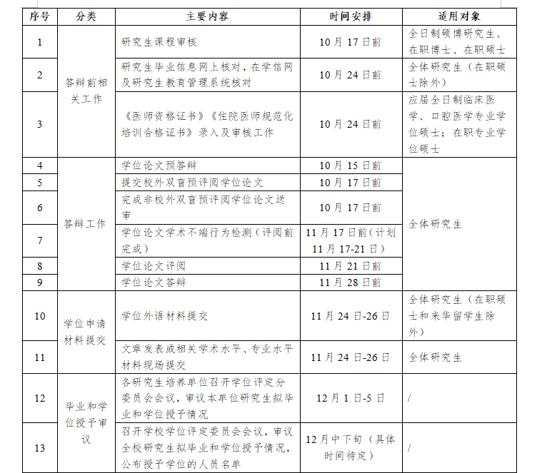 2.学校初定于12月中下旬召开学校学位评定委员会会议审议全校研究生拟毕业和学位授予情况,具体时间另行确定。