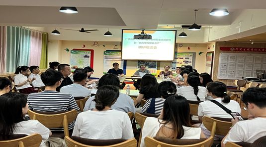 为迎接我校第十三次党员代表大会胜利召开,加强毕业研究生思想政治教育,积极听取研究生对学校建设发展的建议意见,以实际行动向我校90周年校庆献礼,我校于6月19日下午在研究生公寓楼(帆船楼)学术报告厅1号厅召开了广西医科大学2023届毕业研究生主题教育暨“我为母校献金点子”调研座谈会。党委研究生工作部部长樊晓晖、副部长韩广梅、李新春及相关科室人员、各培养单位分管毕业研究生的专、兼职研究生辅导员、2023届毕业研究生各班级班长、毕业研究生代表等50余人参加了座谈会。