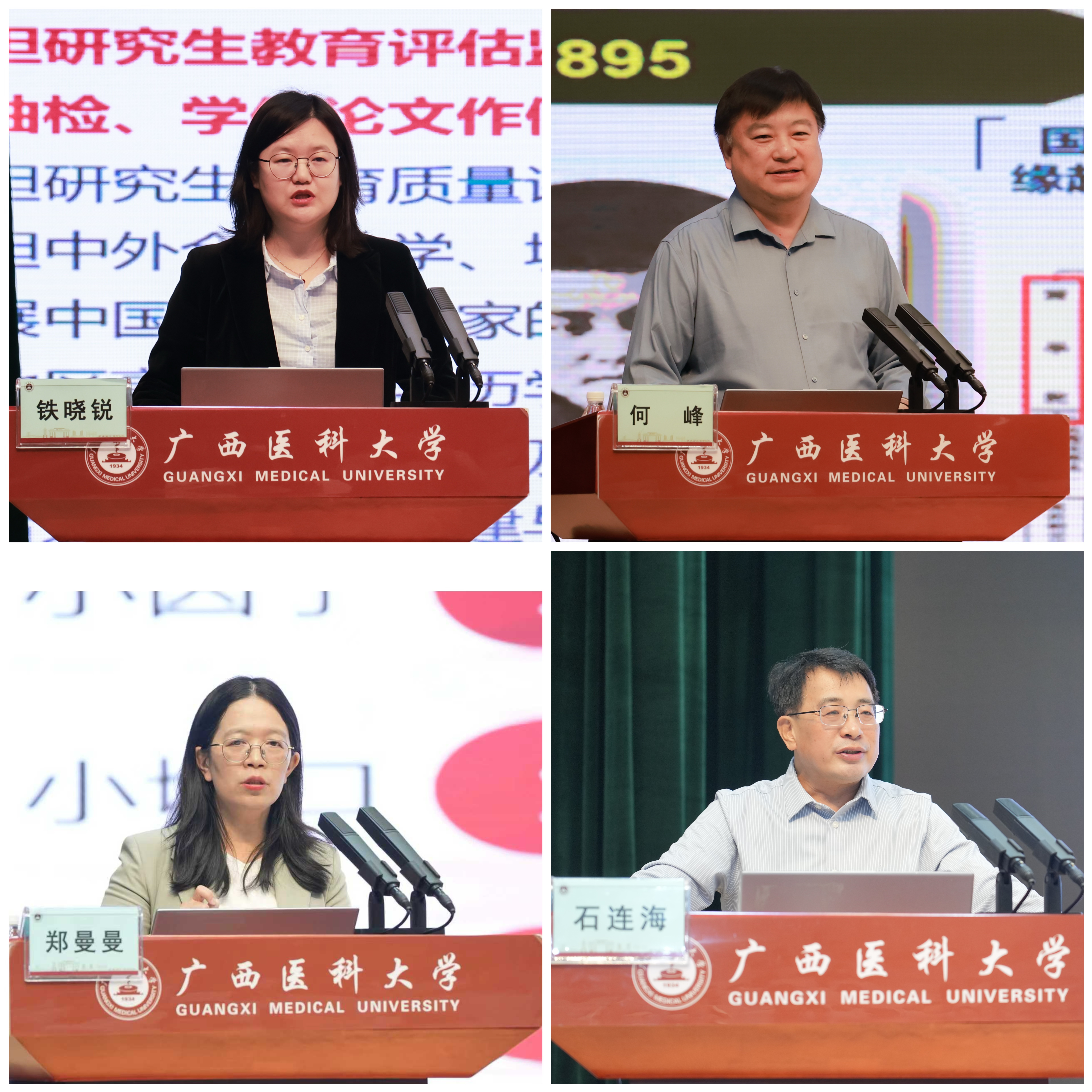 培训环节聚焦“政策解读+实践赋能”,铁晓锐紧扣国家政策导向,系统解读了学位论文质量监测的关键内容与评价标准;何峰聚焦AI时代医工融合发展需求,分享医工交叉融合的人才培养模式与科研合作机制;郑曼曼基于地方医科院校发展特点,从导师遴选、考核、激励等多个维度分享经验;石连海围绕学位管理法治化建设与师德师风培育,对学位法进行政策解读与案例剖析。