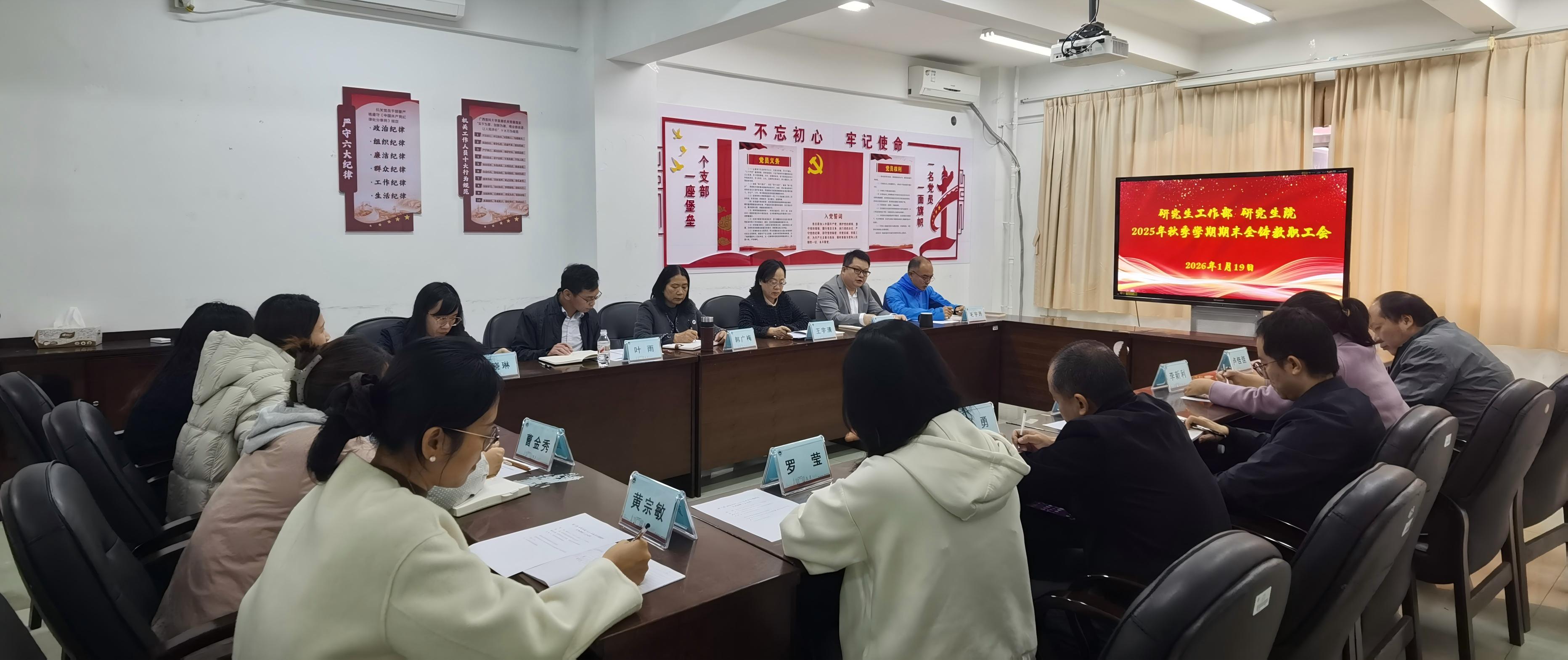 1月19日,党委研究生工作部、研究生院在校本部留四栋503会议室召开2025年秋季学期期末全体教职工会议,全面总结年度工作,部署2026年度重点任务。部院全体教职工参会,会议由研究生院院长李新春主持。
